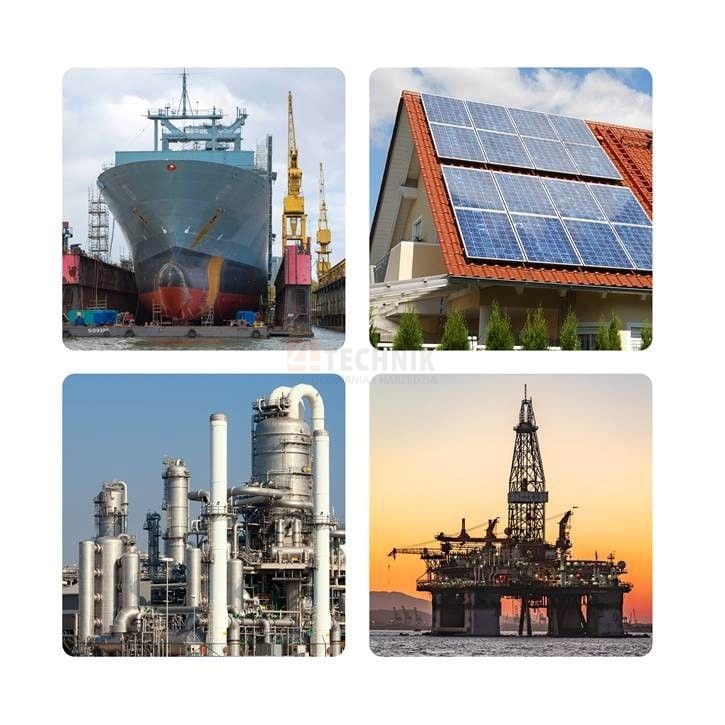 - Mocowanie kabli i rur w przemyśle stoczniowym, zakładach petrochemicznych, platformach wiertniczych i środowiskach z ryzykiem pożaru